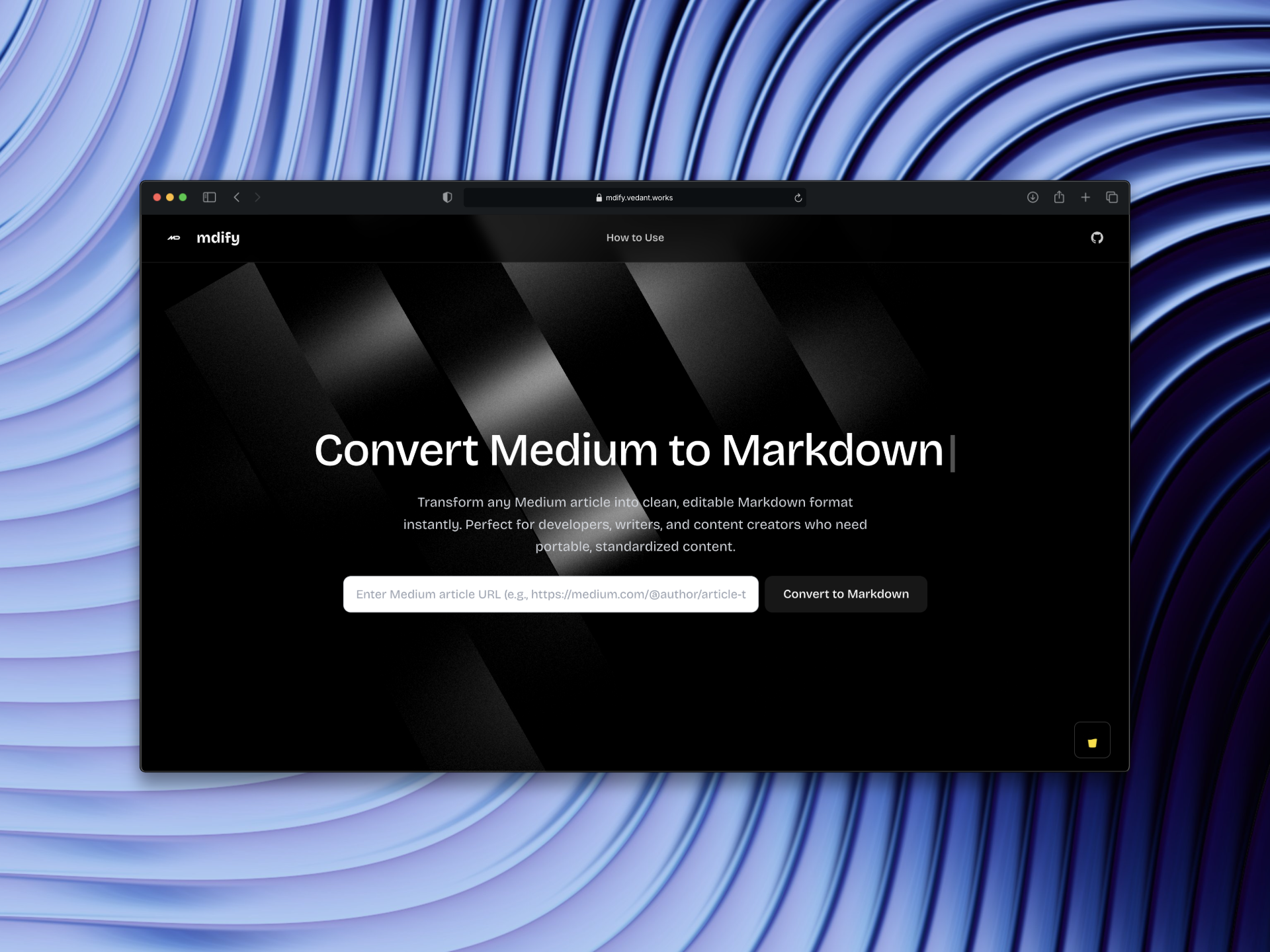 2025-11-14Convert your Medium articles into clean, editable Markdown format quickly with mdify—no copy-pasting required.